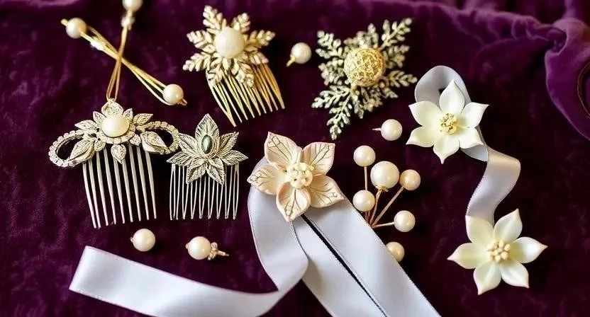 - Шпильки: С жемчугом или стразами для фиксации прически и добавления декора.
