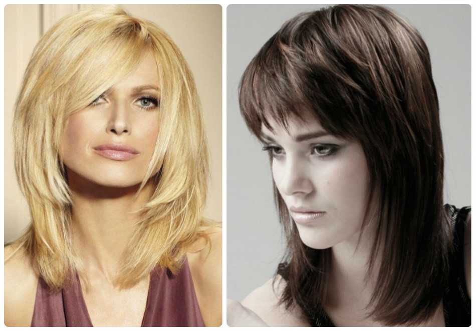 Лесенка и каскад подойдёт для волос средней длины и образует праздничный вариант. Пряди височной стороны можно направить к скулам, тем самым делая акцент на достоинстве частей лица.