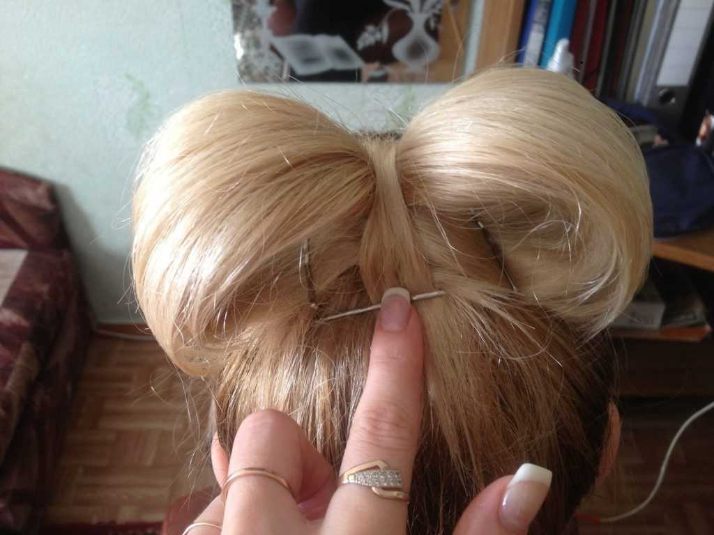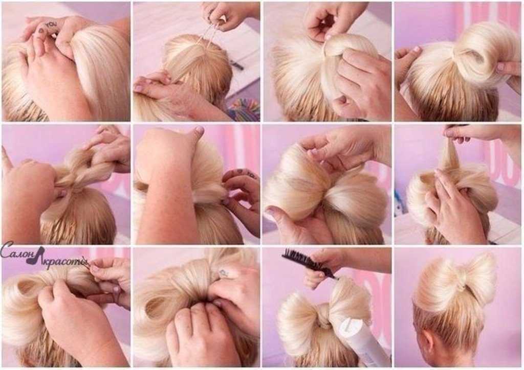 Такая укладка подойдет для средних и длинных волос. Чтобы сделать аккуратный бантик самостоятельно, следуйте инструкции: