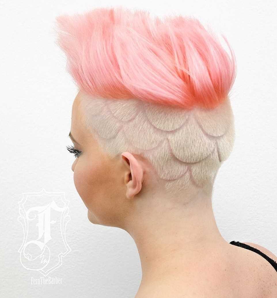 Long and salmon pink on top, uber short and pearl white on the sides, the two-tone style is bold yet classy. A scalloped design wraps around the back of the head to showcase the under-the-sea inspiration behind this mesmerizing look. Clearly, mermaids are real; with this pastel pink hairstyle, you too can channel your inner sea creature.