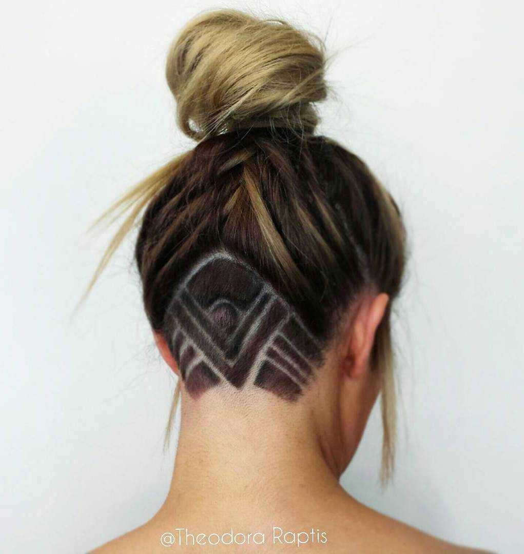 If you’re worried about double buns making you seem too young, this grown-up take on the style is one solution. Shaved undercuts alone add a daring finish to updos, but floral hair tattoos can personalize them with a feminine touch. Oh, and don’t forget about a fun part, like zig-zags, for an extra dose of playfulness.