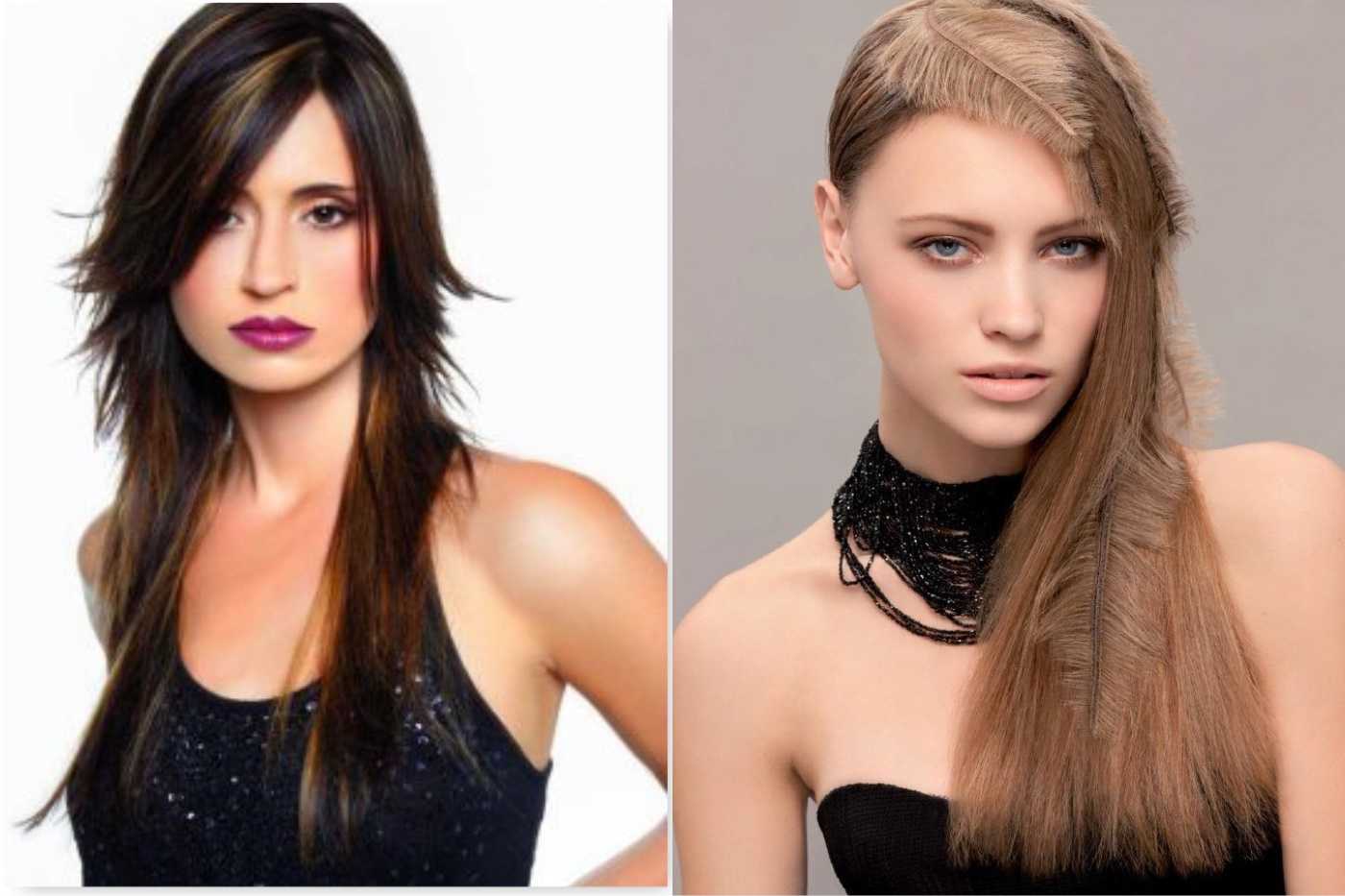 Асимметричные стрижки на длинные волосы, как правило, ставят перед собой две основные цели: удлинить лицо, сформировать нужную его форму или добавить пикантности классической прическе. Существуют следующие вариации асимметричного выстригания длинных локонов: многослойное с косым пробором, с неровной челкой или с выбриванием висков.
