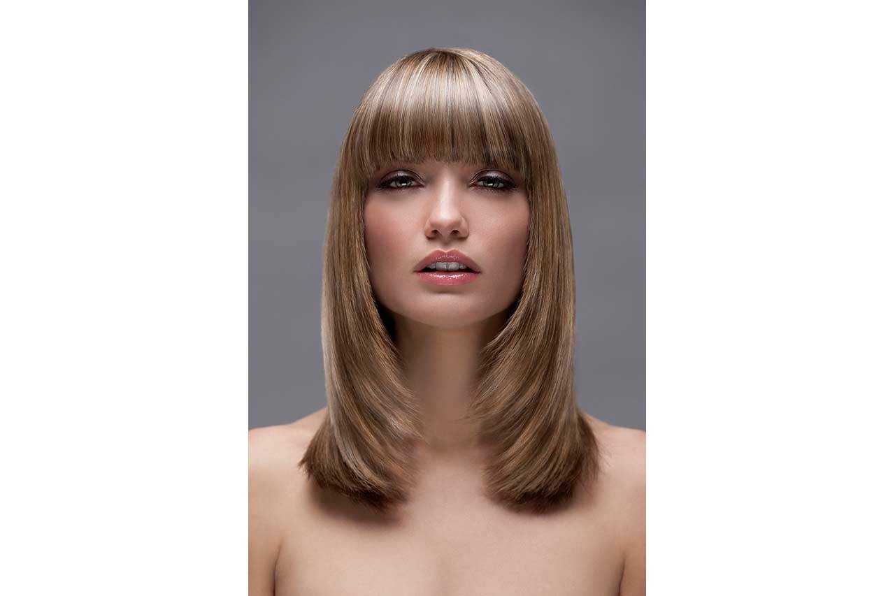 Наиболее модны, а что главное, универсальны два варианта челок. Первый, длинные — до бровей — густые и прямые, они отлично контрастируют с многослойным контуром прически и в тоже время отлично корректируют овал лица. Такая челка будет великолепно смотреться на обладательницах узких и вытянутых к подбородку лиц. Она отлично уравновешивает их пропорции и делает черты лица изящнее.