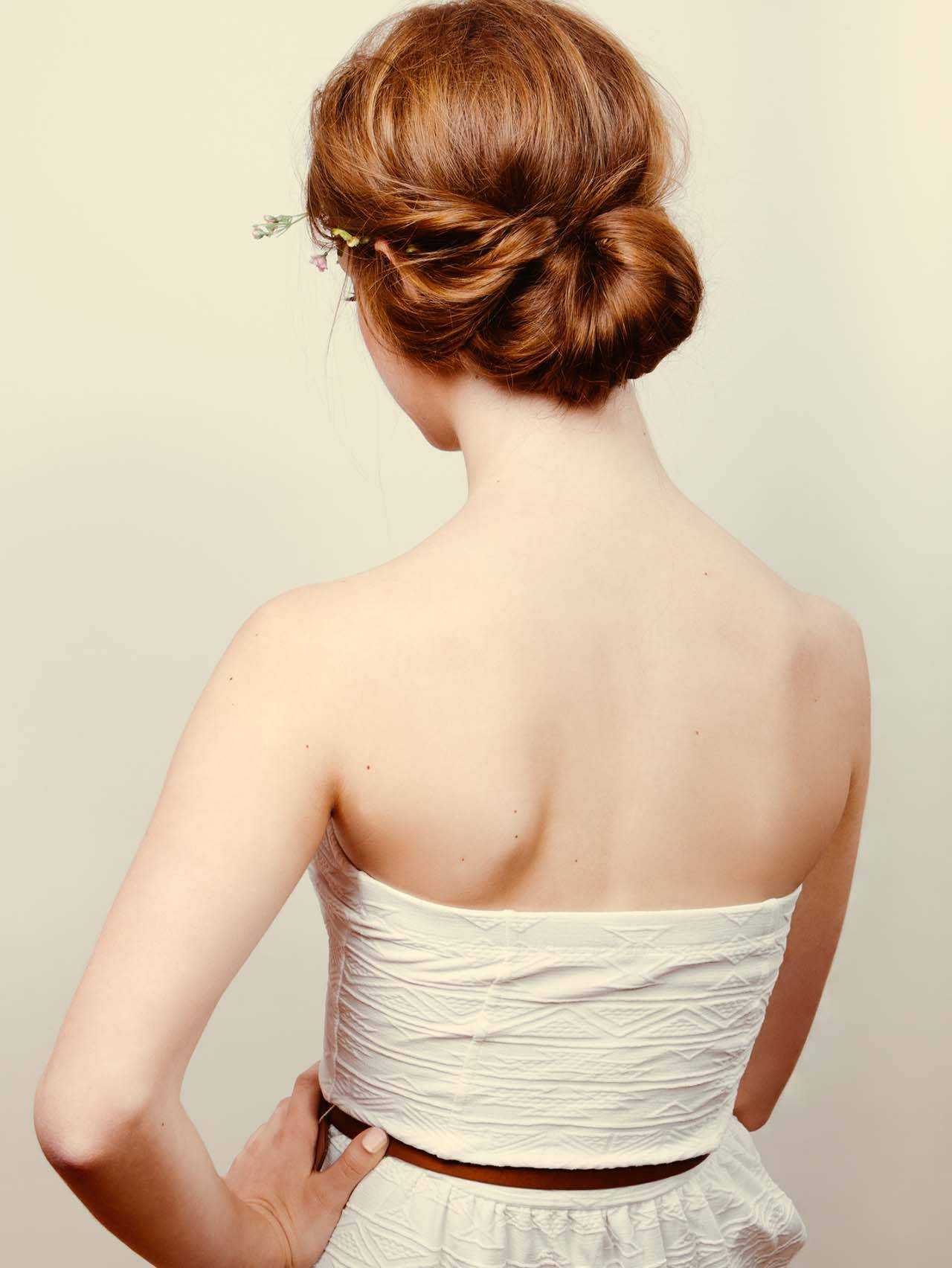 Стильный пучок отлично подходит как для вечеринки, так и для повседневного образа. Праздничный вариант может быть выполнен с большим объемом. Для достижения этой цели воспользуйтесь специальным «бубликом» и слегка начешите волосы у корней. Кроме того, к прическе стоит добавить необычный декор или плетение.