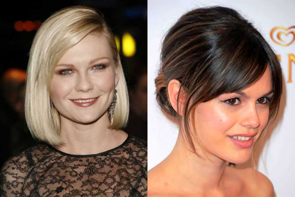 На темные, русые пряди и для правильной, овальной формы лица подойдут любого типа подстрижки с косой челкой (и с короткой, и с длинной).