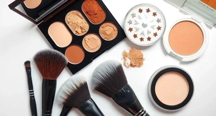 - Пудра: Для закрепления макияжа и матирования кожи.