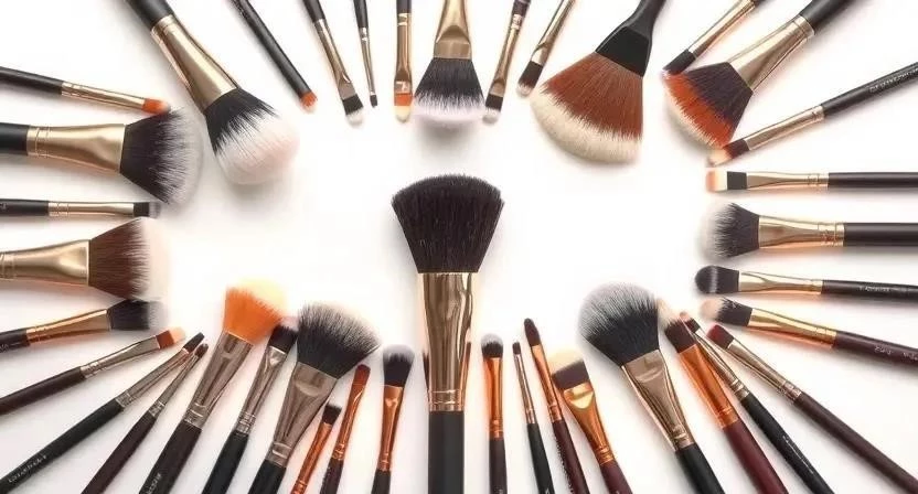 - Кисти для макияжа: Скошенная кисть для контуринга, пушистая кисть для растушевки, кисть для хайлайтера и кисть для румян.
