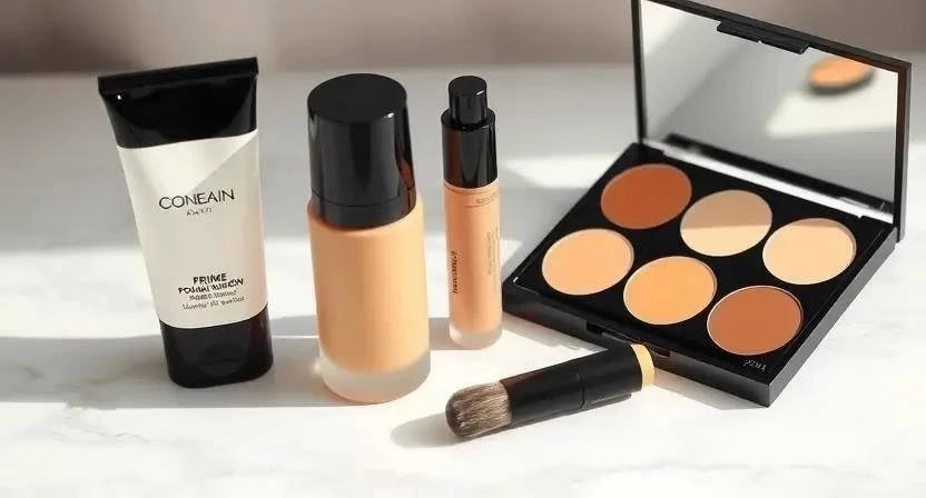 - Нанесение тональной основы и консилера: Нанесите тональную основу, подходящую вашему типу кожи, и замаскируйте недостатки с помощью консилера.