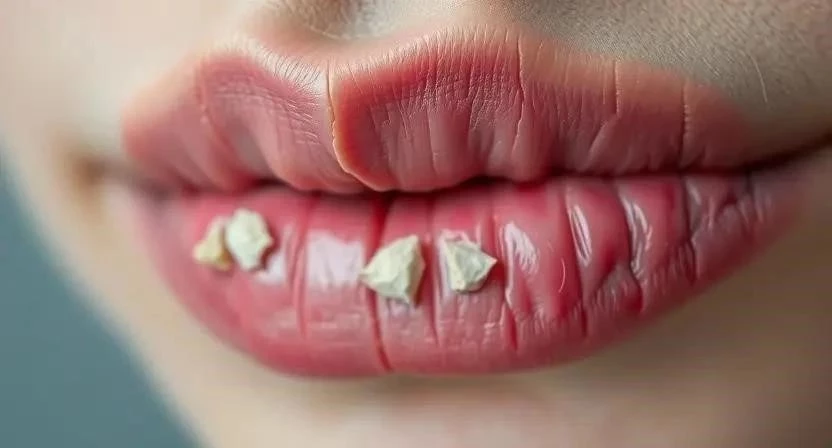 - Аккуратно промокните губы стерильной салфеткой, смоченной в антисептике (например, хлоргексидине).
