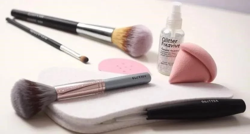 - Нанесите фиксатор на участки кожи, где планируете нанести блестки.