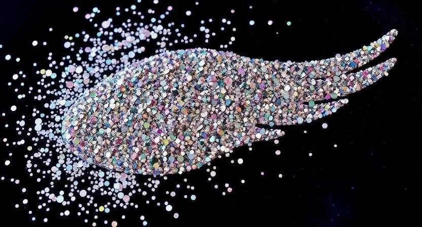 - Выберите форму блесток: вытянутые, заостренные, напоминающие перья.