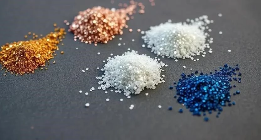 - Косметические блестки: Изготовлены из полиэтилентерефталата (PET), безопасны для кожи при правильном использовании.