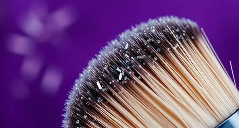 - Удалите излишки блесток кистью.