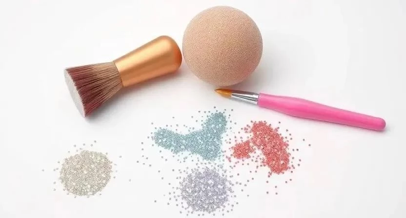 - Выберите инструмент: Используйте кисть, аппликатор или губку для нанесения блесток.