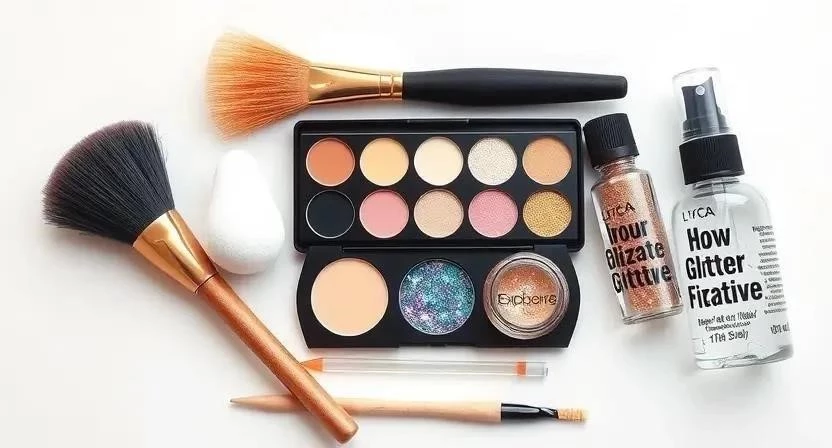 - Фиксатор макияжа: Распылите фиксатор макияжа на кожу с блестками.
