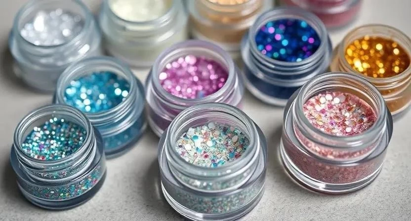 | Глиттер | Крупные частицы, яркий блеск | Крупный | Разнообразные | Фестивали, вечеринки |