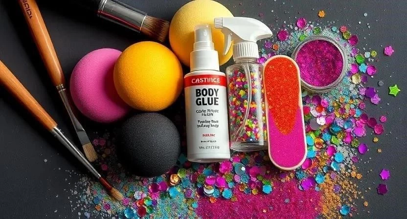 - Клей для тела: Специальный клей для тела обеспечит надежную фиксацию блесток.