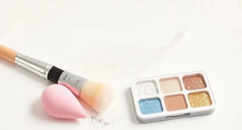 - Нанесите блестки с помощью кисти или спонжа.