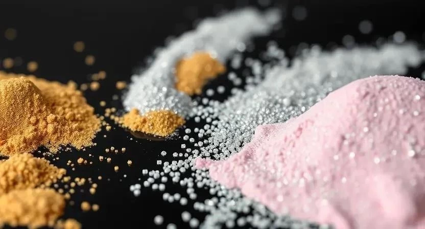 Глиттеры изготавливаются из различных материалов, включая полиэтилентерефталат (PET), полиэтилен (PE), стекло и натуральные минералы, такие как слюда. Важно обращать внимание на состав, особенно если у вас чувствительная кожа.