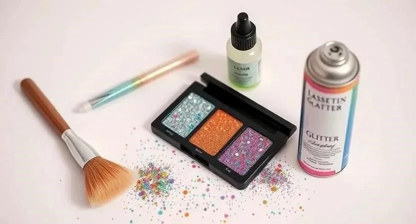 - Лак для волос: Создает защитный слой и предотвращает осыпание блесток.