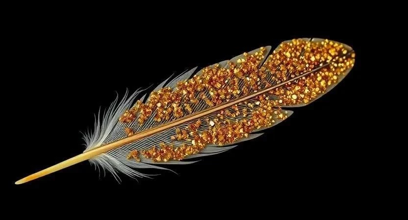 - Нанесите золотые и бронзовые блестки на клей, создавая эффект перьев.