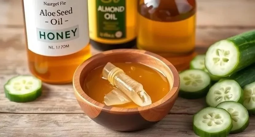 Для приготовления домашнего средства для снятия макияжа можно использовать различные натуральные масла, обладающие смягчающими и очищающими свойствами. Масло жожоба по составу близко к кожному салу, поэтому отлично увлажняет и не забивает поры. Масло виноградных косточек легкое и быстро впитывается, подходит для жирной кожи. Оливковое масло питает и смягчает кожу, но может быть тяжелым для жирного типа. Миндальное масло успокаивает раздраженную кожу и обладает антиоксидантными свойствами. Алоэ вера обладает успокаивающим и увлажняющим действием, идеально подходит для чувствительной кожи. Гамамелис тонизирует и сужает поры, подходит для жирной и проблемной кожи. Витамин Е – мощный антиоксидант, защищает кожу от свободных радикалов. Огурец освежает и увлажняет кожу, обладает противовоспалительными свойствами.