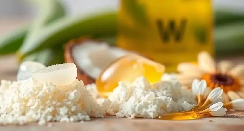 - Питательные компоненты: масла (аргановое, кокосовое, оливковое), витамины (A, E, C).
