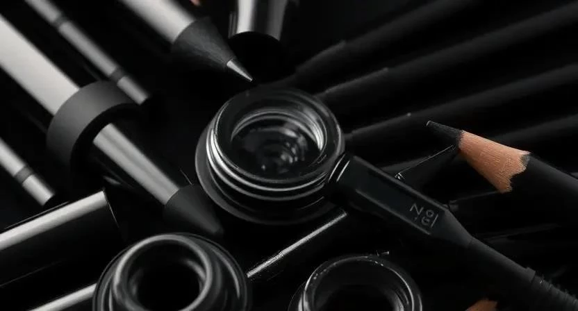 - Черный карандаш или подводка (жидкая, гелевая или кремовая).