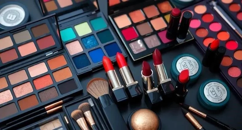 - Тени для век: Темные оттенки – черный, серый, бордовый, фиолетовый. Палетка Huda Beauty Obsessions Palettes (около 4000 руб.).