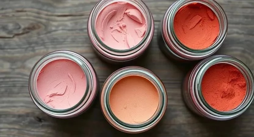 - Румяна из натуральных пигментов: Можно использовать различные натуральные пигменты, такие как охру, умбра, сиена. Смешайте пигмент с кукурузным крахмалом и кокосовым маслом до желаемой консистенции.