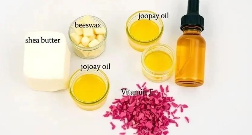 - Классический рецепт: 1 столовая ложка пчелиного воска, 2 столовые ложки масла ши, 1 столовая ложка кокосового масла, 1/2 чайной ложки витамина Е.