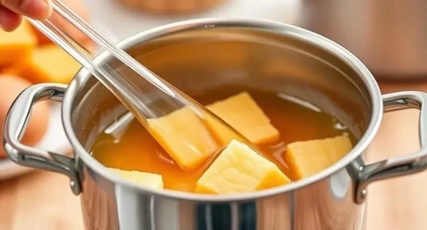 - Растопите 1 столовую ложку пчелиного воска на водяной бане.