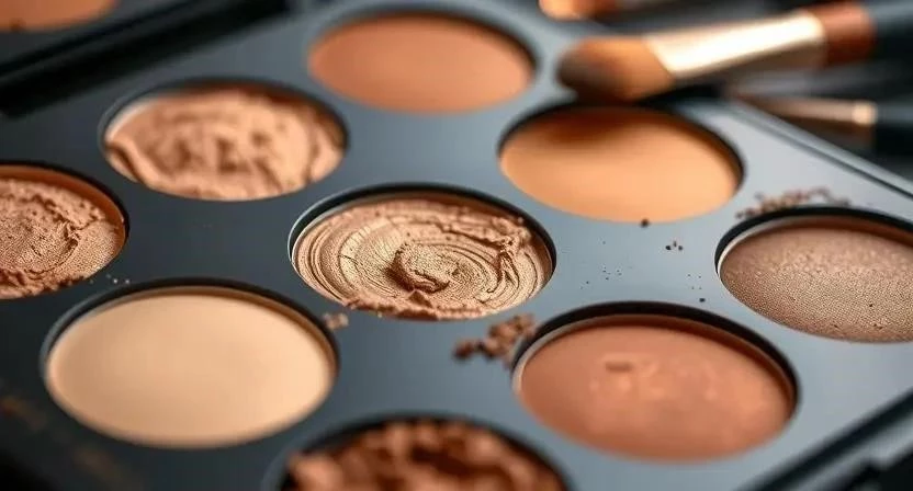 - Тени для век: палетка с различными оттенками (матовые, шиммерные, сатиновые)