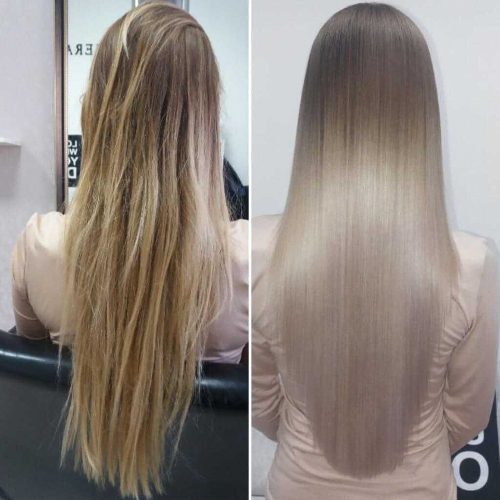 - Структура волос изнутри не меняется, т.к. кератин проникает во внешние повреждения. Поэтому, когда он весь вымывается из волос, они снова становятся такими же, какими и были до процедуры. Оздоровления не происходит, имейте это ввиду.