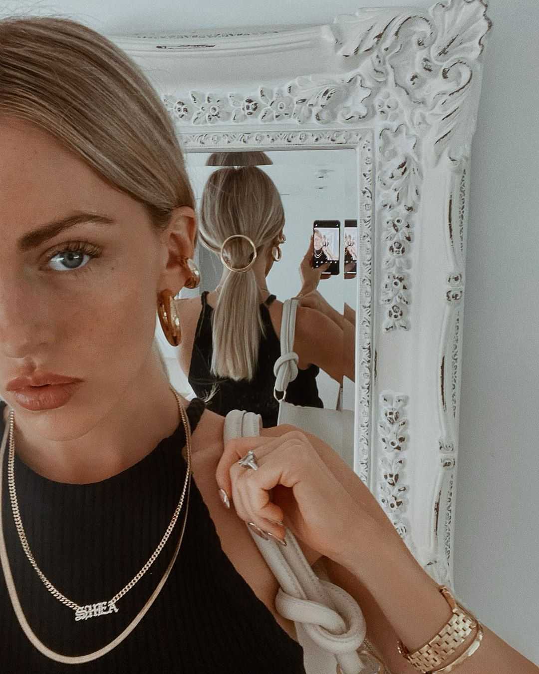 - Соберите волосы в хвост на затылке, оставив пару прядей у лица. Не нужно убирать волосы за уши, пусть пряди, идущие к хвосту, частично прикрывают ваши уши